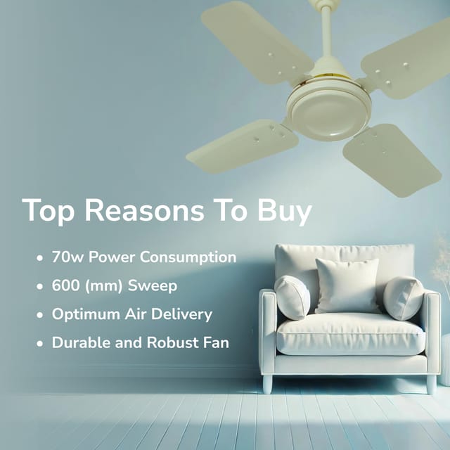 The Breezy 24" HS is a compact and stylish ceiling fan designed for indoor use. With its four blades and powerful 70W motor, it provides effective cooling. The fan features a durable powder-coated finish and comes with a 2-year warranty for added peace of mind.